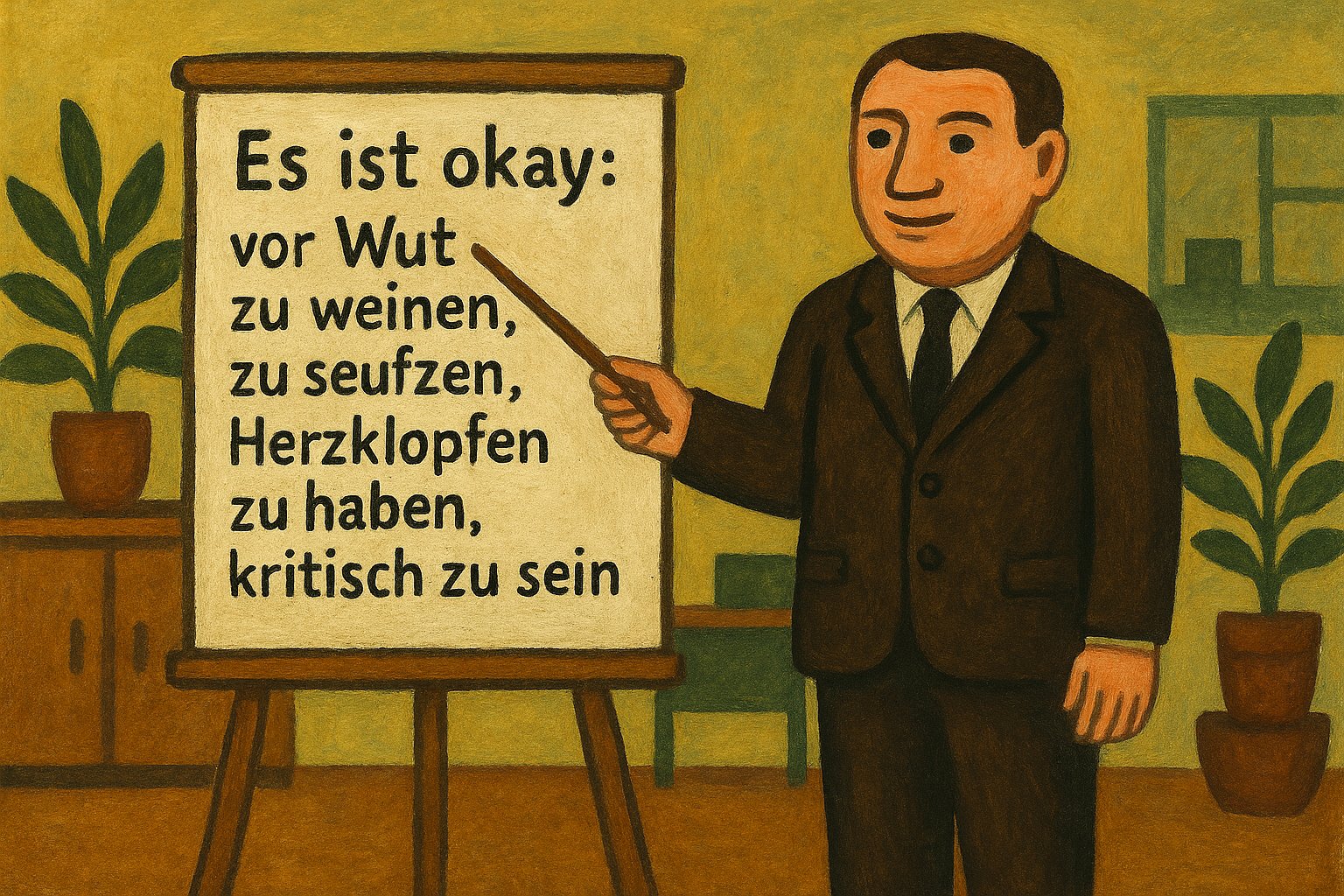 Die Führungskraft, die „ihre Gefühle wahrnimmt und mitteilt“, gibt anderen die „Erlaubnis“, dies ebenfalls zu tun, erklärt man uns. Die Erlaubnisstruktur bleibt intakt, wird nur sanfter kommuniziert. Der Chef darf jetzt seufzen – und damit signalisieren: Ihr dürft auch. Das nivelliert keine Hierarchie, es verschleiert sie durch therapeutische Rhetorik.